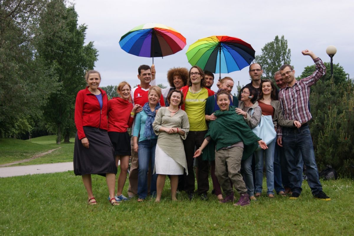 Najtrudniej jest śmiać się na własną rękę…najprościej w klubie śmiechu, w którym umawiasz się ze znajomymi i śmiejecie się w bezpiecznym środowisku. Najlepszym sposobem aby śmiać się grubo ponad średnią krajową jest… regularne prowadzenie sesji jogi śmiechu. Śmiech zbliża ludzi w bardzo szybki sposób i tworząc klub śmiechu prawdopodobnie zyskasz nowych przyjaciół. Aby kluby śmiechu mogły powstawać potrzeba liderek i liderów – osób posiadających podstawową znajomość jogi śmiechu i chętnych by prowadzić zajęcia. Na razie klubów śmiechu jest w Polsce tylko kilka, ale mam dobrą wiadomość: wystarczy jeden weekend by zyskać potrzebną wiedzę i umiejętności do prowadzenia jogi śmiechu w Twojej miejscowości, pobliskim domu kultury lub firmie.